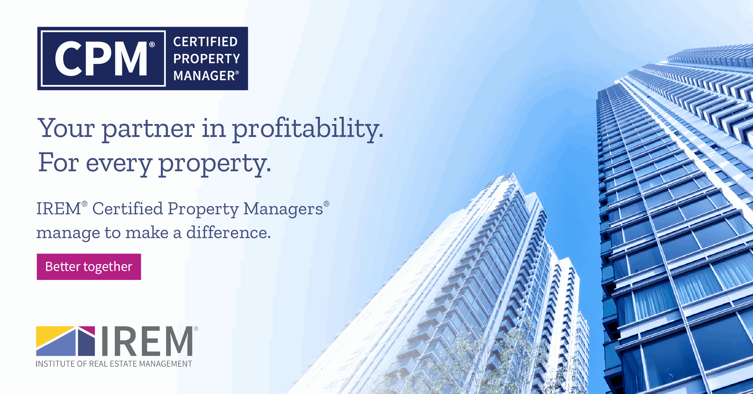 We’re also deploying a paid digital advertising campaign targeting employers, property management firms, building owners and investors to educate them on the value IREM certification holders bring to their properties.